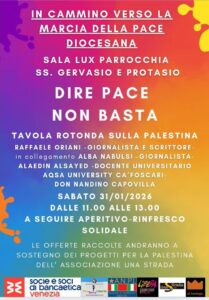 Potremo ascoltare tra le altre la testimonianza di un giornalista “con la schiena dritta” che ha dovuto lasciare un importante giornale per la mancata corretta informazione sulla questione Palestina, e un ricercatore che è riuscito a sfuggire all’inferno grazie a una borsa di studio di Cà Foscari.
