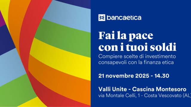 Compiere scelte di investimento etiche con la finanza etica, ne parliamo insieme Venerdì 21 Novembre alle 14,30 presso Valli Unite – Cascina Montesoro, Via Montale Celli, 1, 15050 Costa Vescovato AL