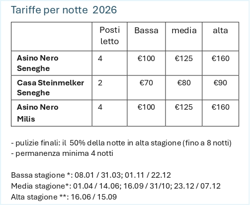 Le tariffe indicate sono valide fino a 4 ospiti.