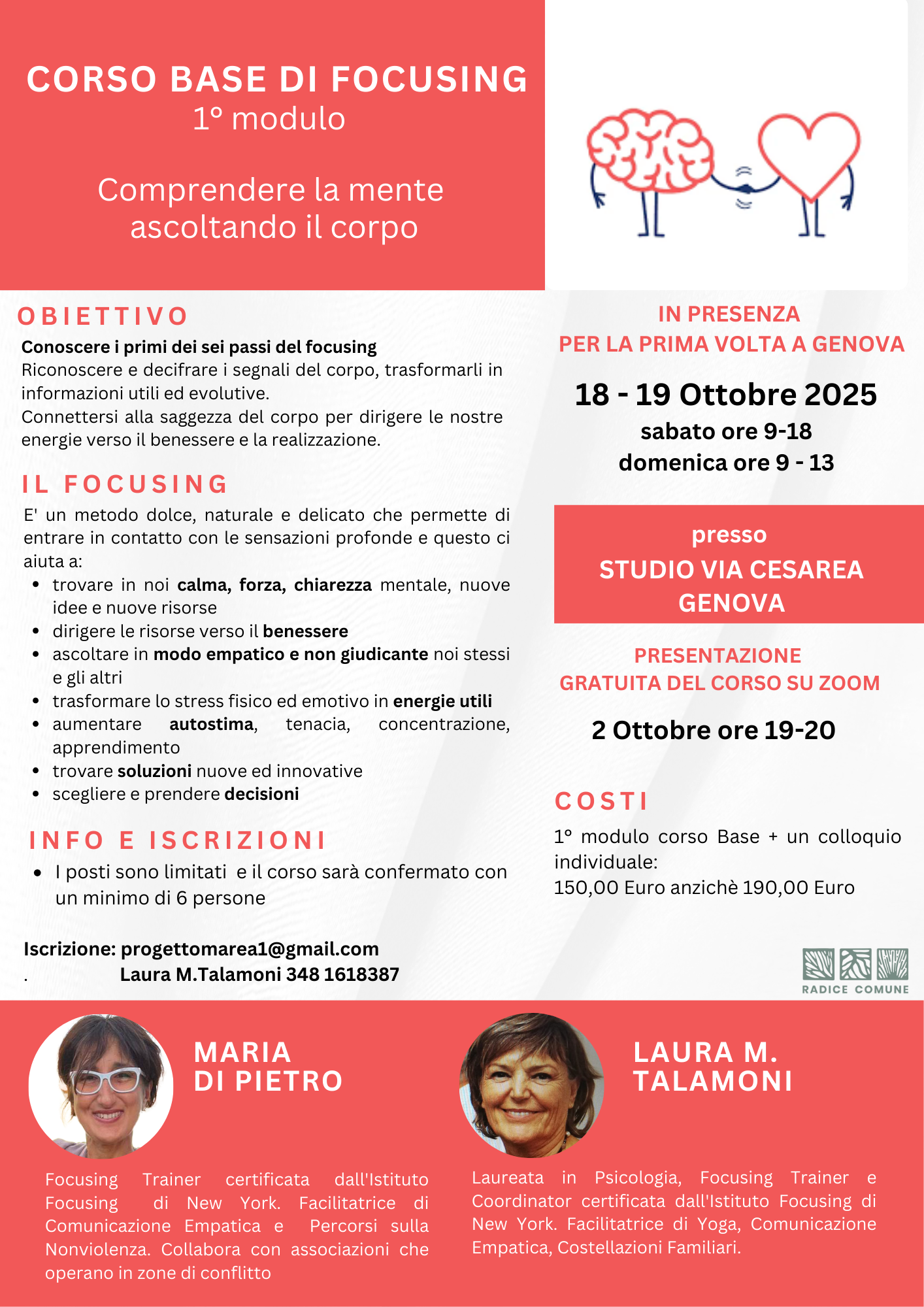 In presenza per la prima volta a Genova 18-19 ottobre presso Studio Cesarea