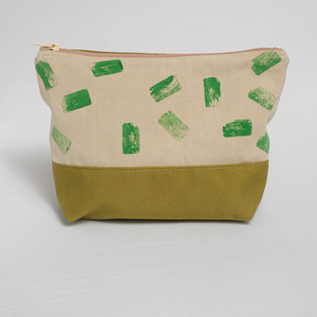 L’interno è foderato con stoffa coordinata, la cerniera superiore è lunga 22 cm.