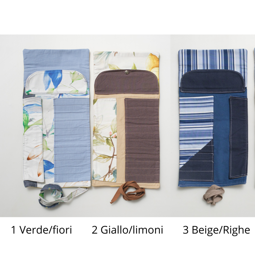 Astucci arrotolabili per pennelli e colori o per uncinetti, fili e forbici