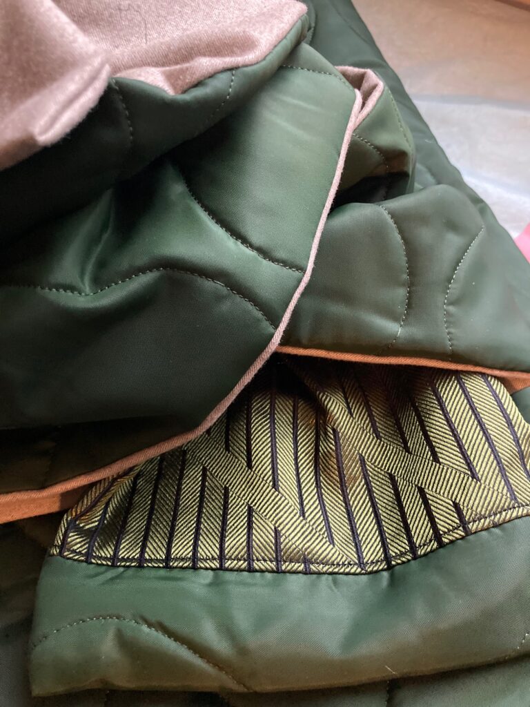 La sciarpa piumino è ispirata alle giacche a vento di una volta e all’atmosfera delle vacanze sulla neve anni ’60 dove spiccavano sorrisi ed eleganza.