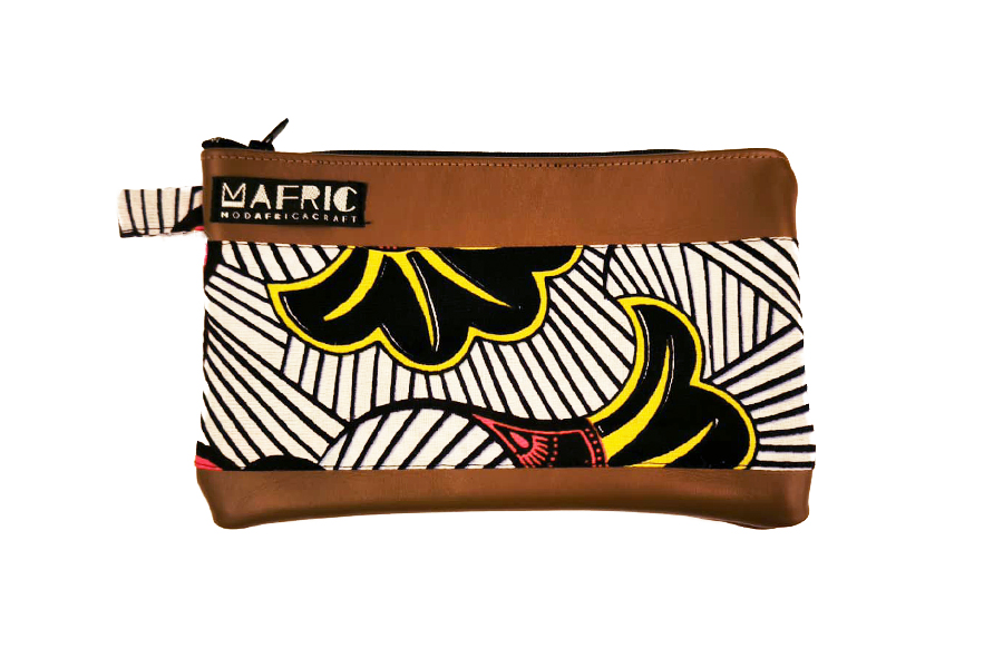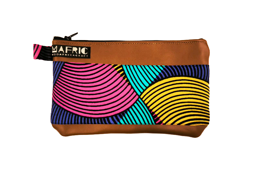 Pochette in colorati tessuti wax e inserti in ecopelle, a sostegno di donne e bambini dello Zambia