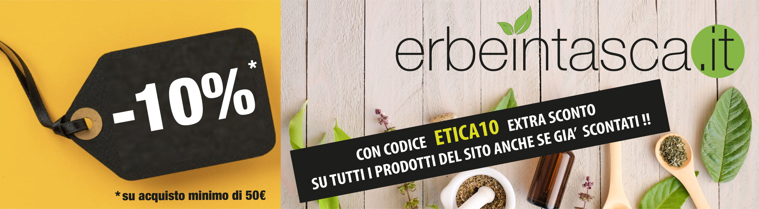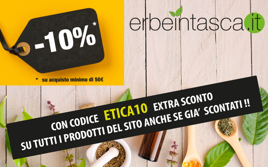Inserendo il codice ETICA10 extra sconto del 10% riservato solamente ai clienti e ai soci Banca Etica su tutti i prodotti del sito Erbeintasca.it anche se già scontati !!