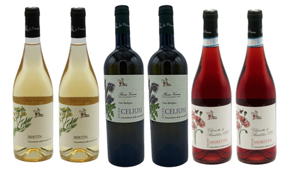 due bottiglie di Bertin, un vino bianco biologico da uve Corvina (unico nel suo genere)